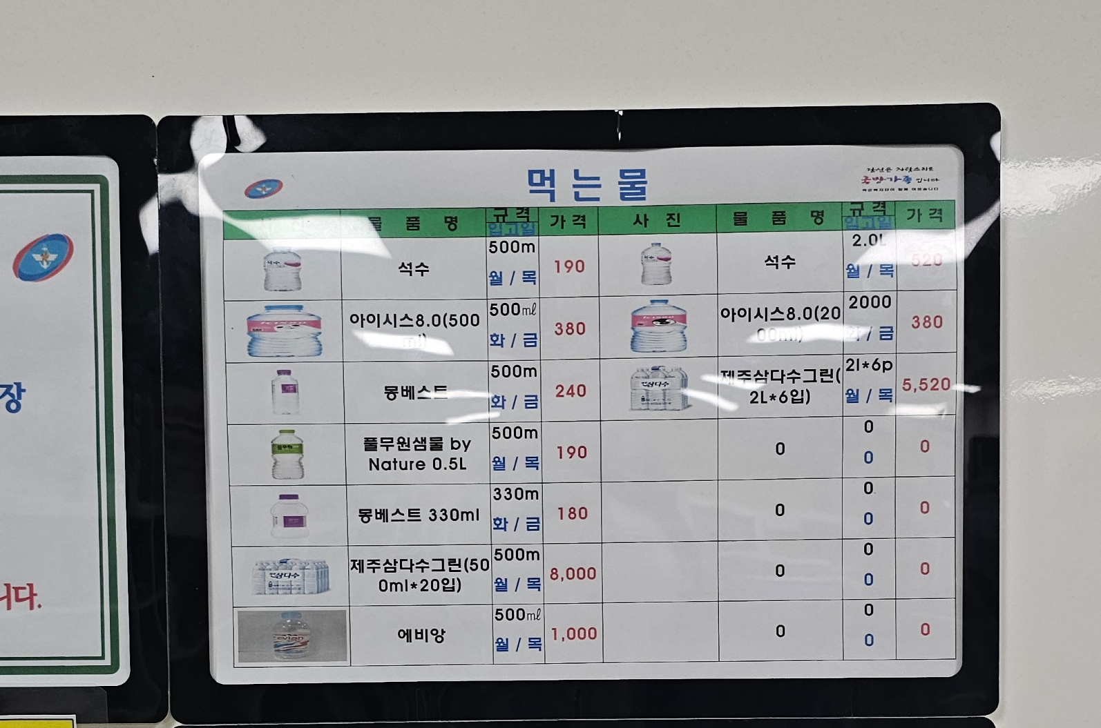 군마트 PX 생수가격도 저렴한걸 확인했네요. 역시 우리나라 군마트 최고입니다!