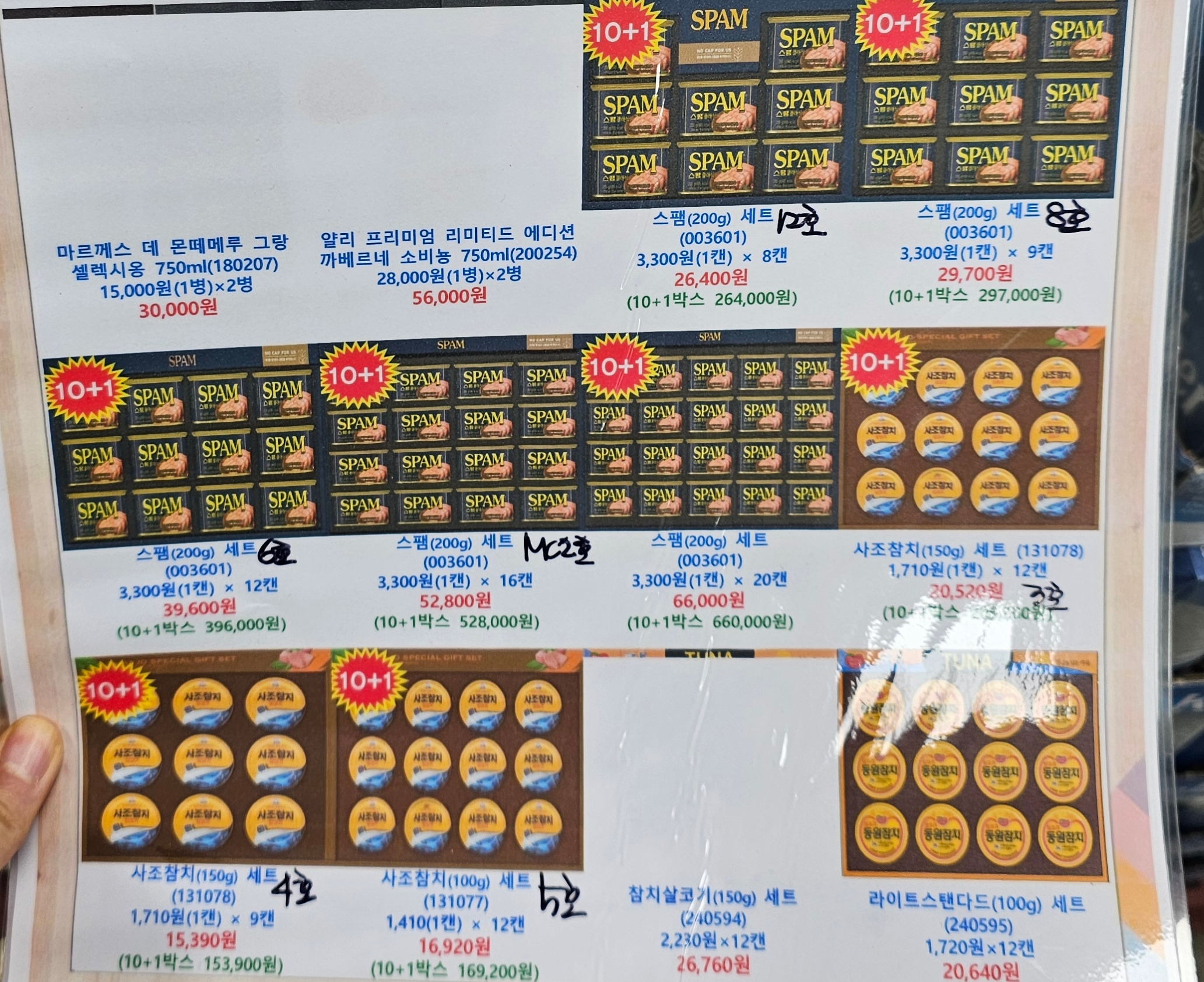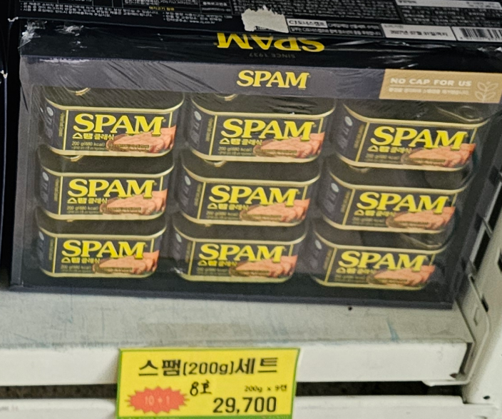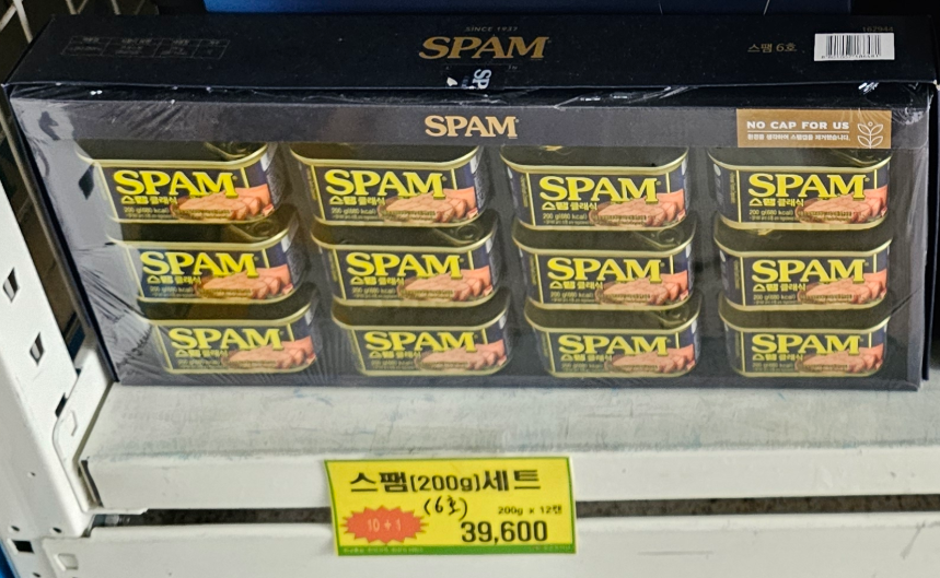 10+1 행사중이라 대량구매하시는분들에겐 좋은 소식이겠어요. 스팸세트는 남녀노소 누구나 좋아하는 밥반찬이죠! 대형마트가면 5만원은 가까이 하던데 군마트니까 가능한 가격 같아요. 워낙 인기템이라 무난하게 스팸 선물하시는것도 좋은것같아요 ! 다만 인터넷최저가는 아주 조금 더 저렴하니 참고하세요.