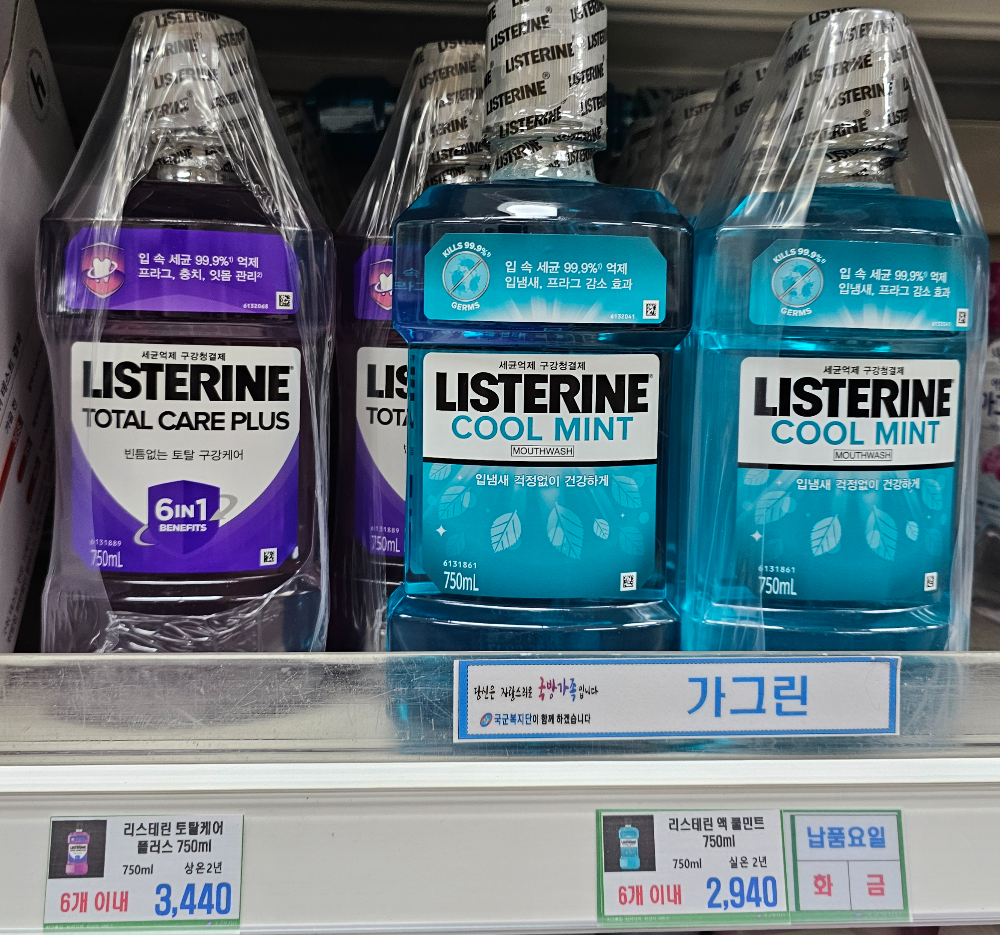 치약 외에도 구강청결제도 다양하게 종류별로 준비되어있는 군마트! 가격까지 너무 착해서 갈때마다 쟁여올수밖에없는 생필품 필수템이 된것같아요! 오늘 포스팅에서는 군마트 가그린, 리스테린 뿐만아니라 신상제품까지 소개해드릴께요!