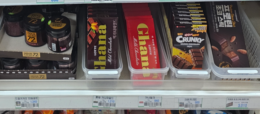 사무실에 하나씩 놓고 먹기 좋은 드림카카오 72%! 달지않아서 식후에 먹기도 좋더라구요. 생각보다 사무실 남자직원들이 되게 좋아했어요. 차에 두고 먹기도 좋구요. 가격도 좋고!! 그리고 가나 밀크초콜릿이 특히나 저렴하죠. 뭐 가나초콜릿은 말안해도 발렌타인데이에 없어선 안되는 기본 초콜릿이 아닐까요?