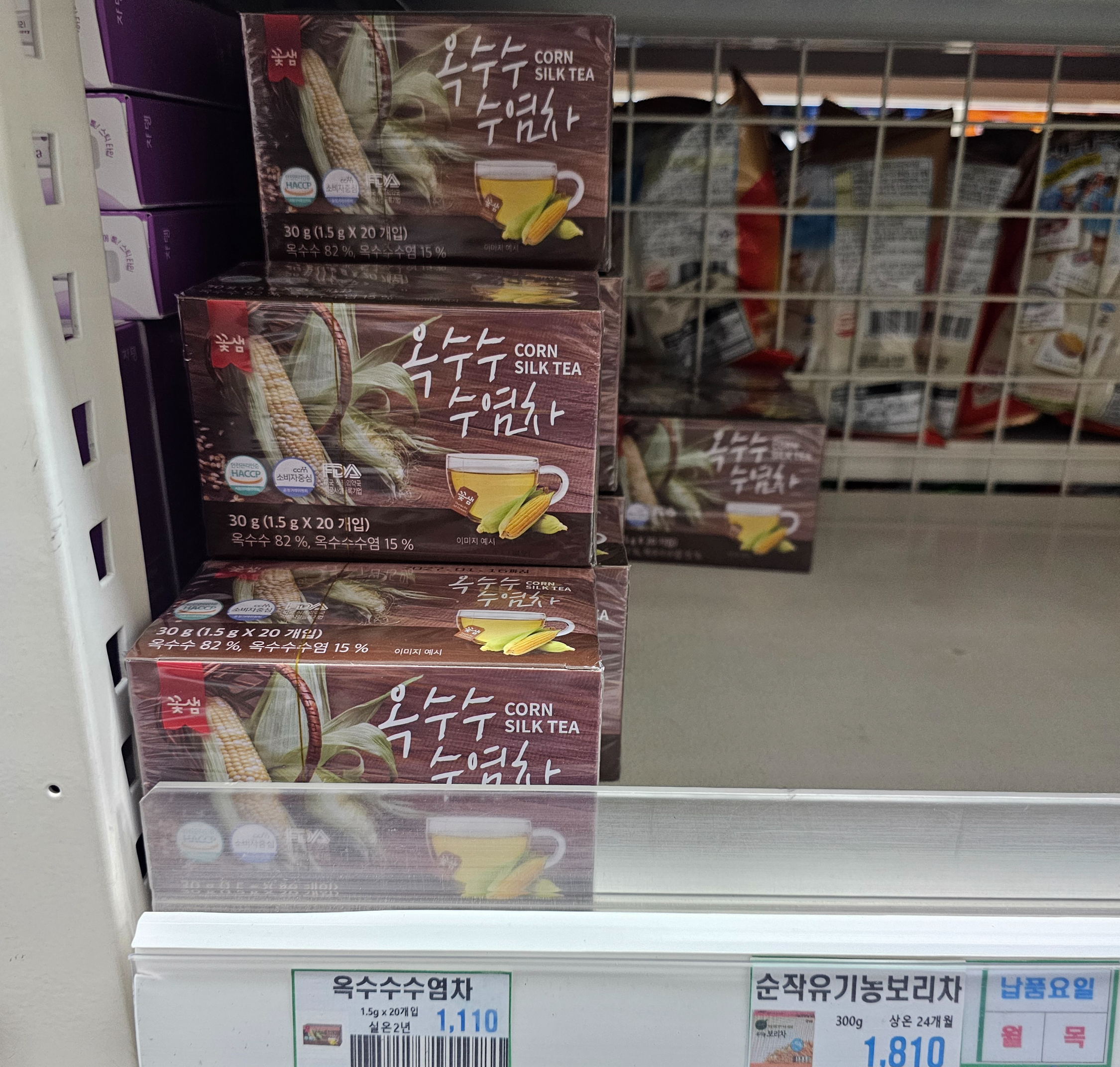 옥수수수염차도 군마트 25년 신상으로 들어왔네요! 커피줄이는 요즘 너무 반가워서 냉큼 집었답니다. 옥수수수염차 싫어하는분들은 주변에 못본거같아요 ㅎㅎ