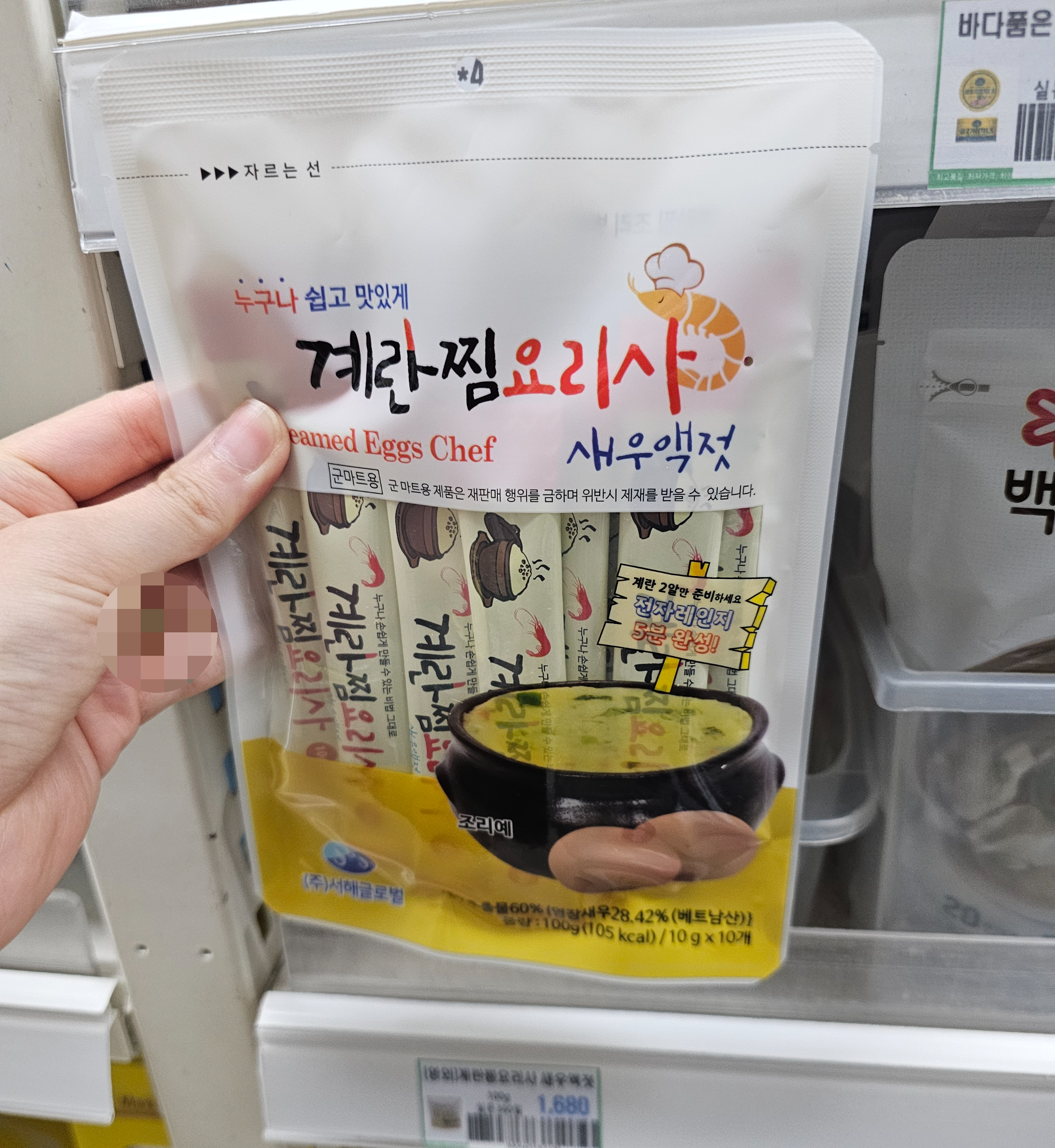 쉽지만 어려운 계란찜.. 계란 2~3개 풀고 이거 하나씩 풀어서 렌지에만 돌려도 고깃집에서 파는 그 계란찜맛이나더라구요. 새우액젓이라 감칠맛이 너무 좋았어요 진짜 주방 필수템! PX 필수템이에요. 출출할때 하나 넣고 돌리면 간식으로도 좋더라구요.