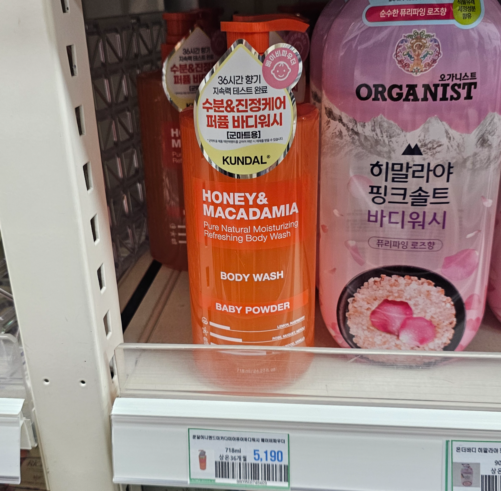 이것도 신상으로 들어왔네요 ! 군마트 바디워시 종류가 별로 없어서 아쉬웠던1인인데 너무반가웠어요. 용량도 대용량인데 가격도 착해서 바로 구매했네요. 쿤달은 향 좋기로 유명하고 베이비파우더향도 은은하고 넘 좋아서 샤워할때마다 기분좋아요! 완전추천