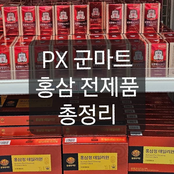 2025년 PX 홍삼 신상품포함해서 전체 제품 둘러봤어요. 군마트에도 동일한 제품이 판매중이니 오전에 방문해보세요! 저는 오픈런했더니 모든 제품을 다 비교해볼 수 있었어요! 군마트 홍삼은 원래 저렴하지만 특정제품은 특히 더 저렴한 제품도 많더라구요. 가격비교는 필수에요!