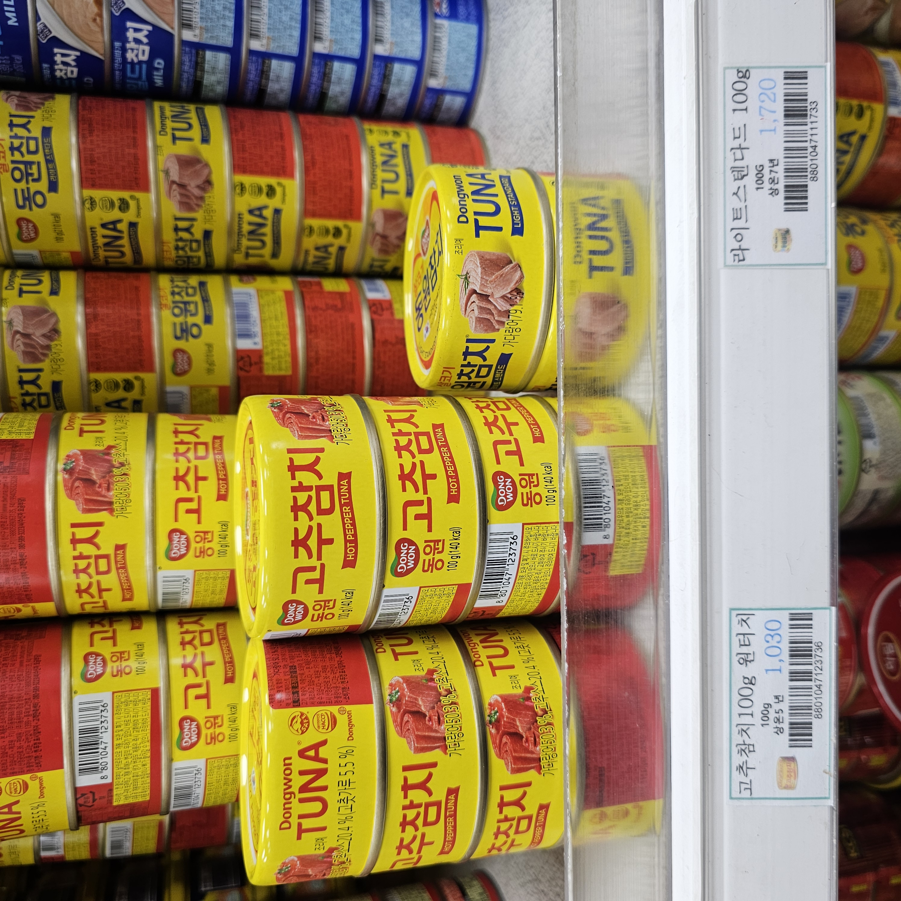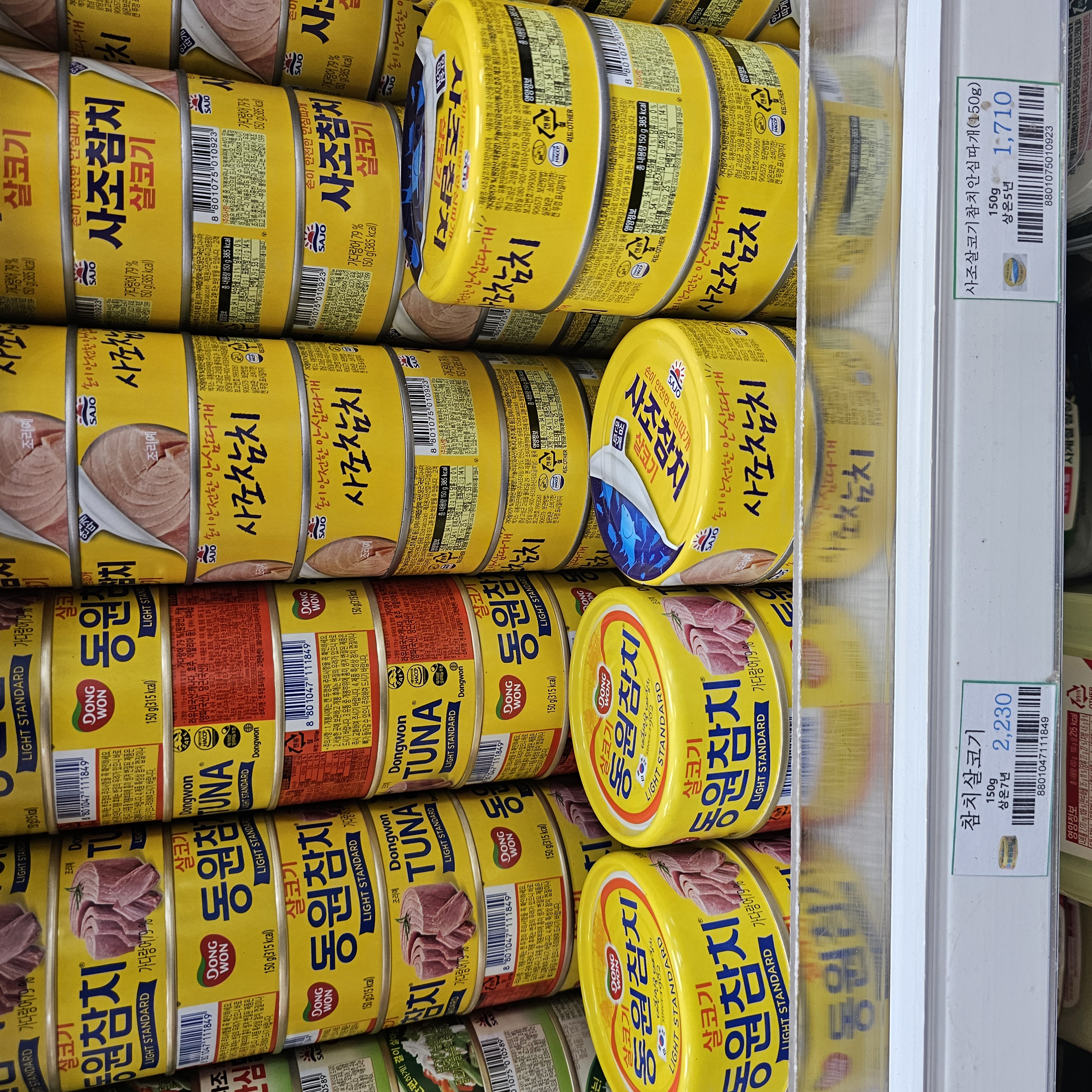 일주일에 한두번은 꼭 먹게되는 참치찌개! 저희집 식구들때문에 참치는 늘 쟁여두는편인데요, 대형마트보다 50%정도 저렴한편이에요. 사조참치는 조금 더 저렴해서 저는 사조도 많이 먹는답니다. 고추참치도 천원! 진짜 저렴하죠? 군마트 가시면 참치도 몇개 담아오세요.