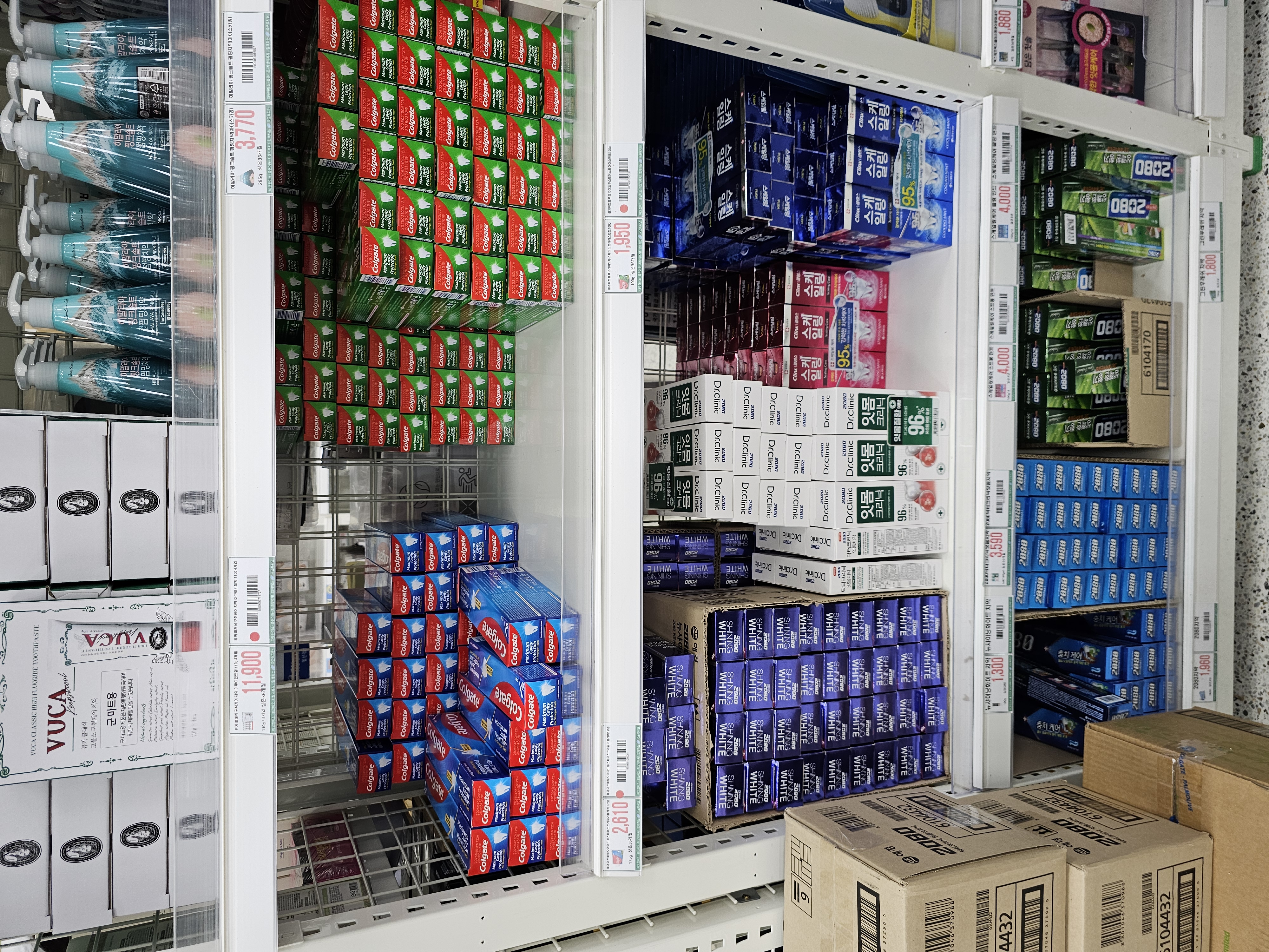 우리가 매일 쓰는 치약. 쟁여둬야 마음 편한거 저뿐인가요? 콜게이트 치약 진짜 좋아하는데 마트보다 훨씬 저렴해서 갈때마다 하나씩 사놓게되더라구요! 뷰카 치약은 새로 들어와서 써봤는데 진짜 상쾌해요! 프리미엄 치약인데 가격도 착하구요. 비싼 칫솔도 군마트에서는 4개 천원대네요