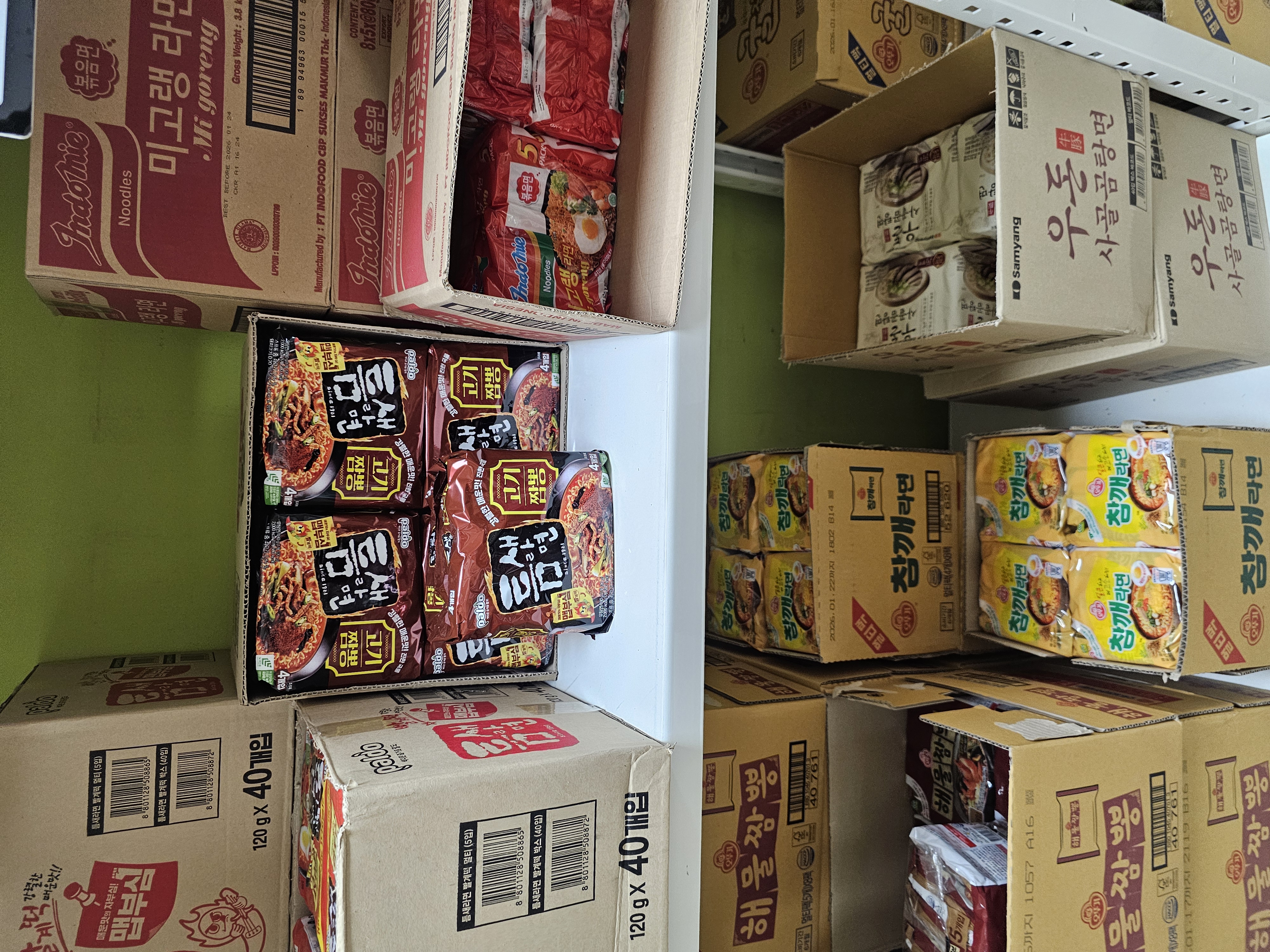 군마트(PX)의 라면 코너는 마치 작은 ‘라면 박람회’ 같아요.