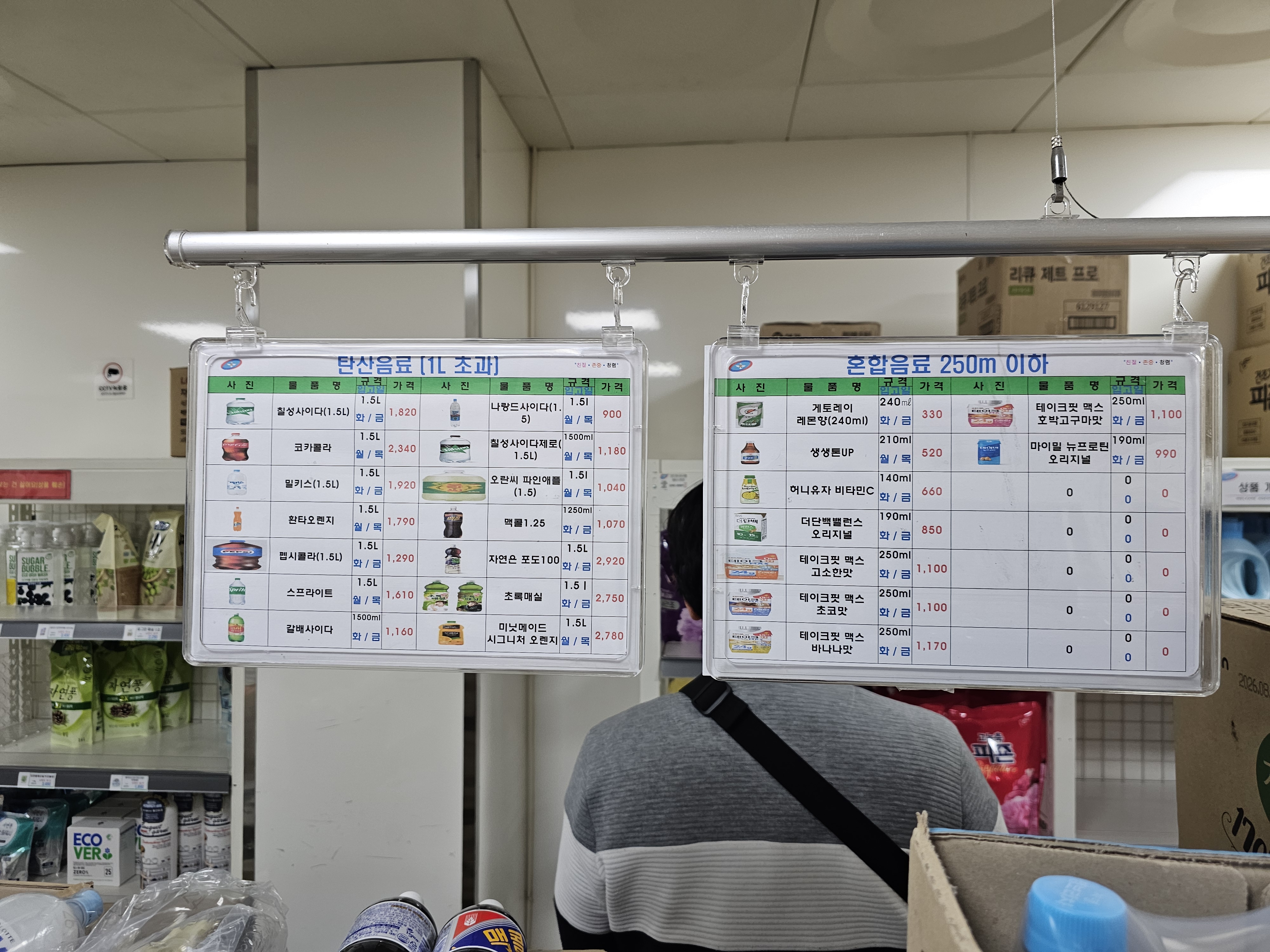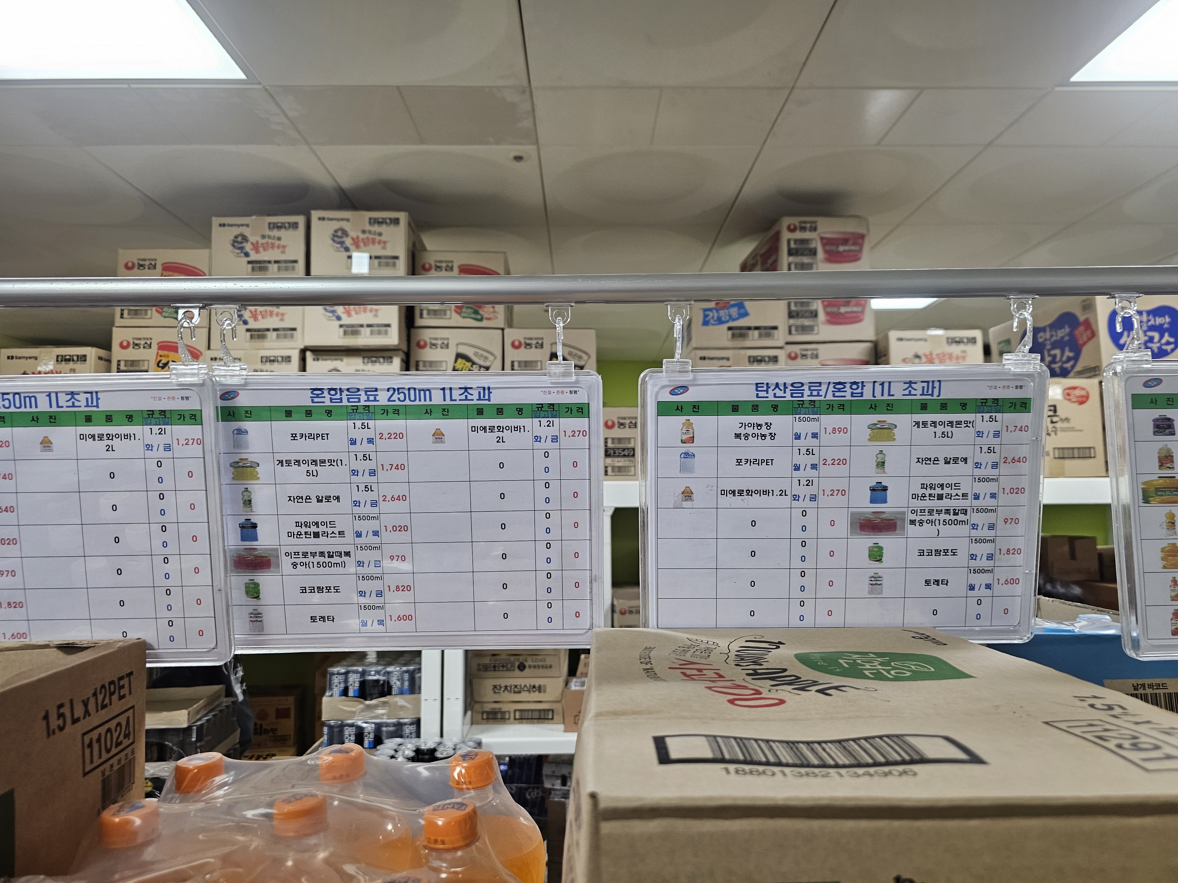 | 펩시콜라 (1.5L) | 1.5L | 1,800 |