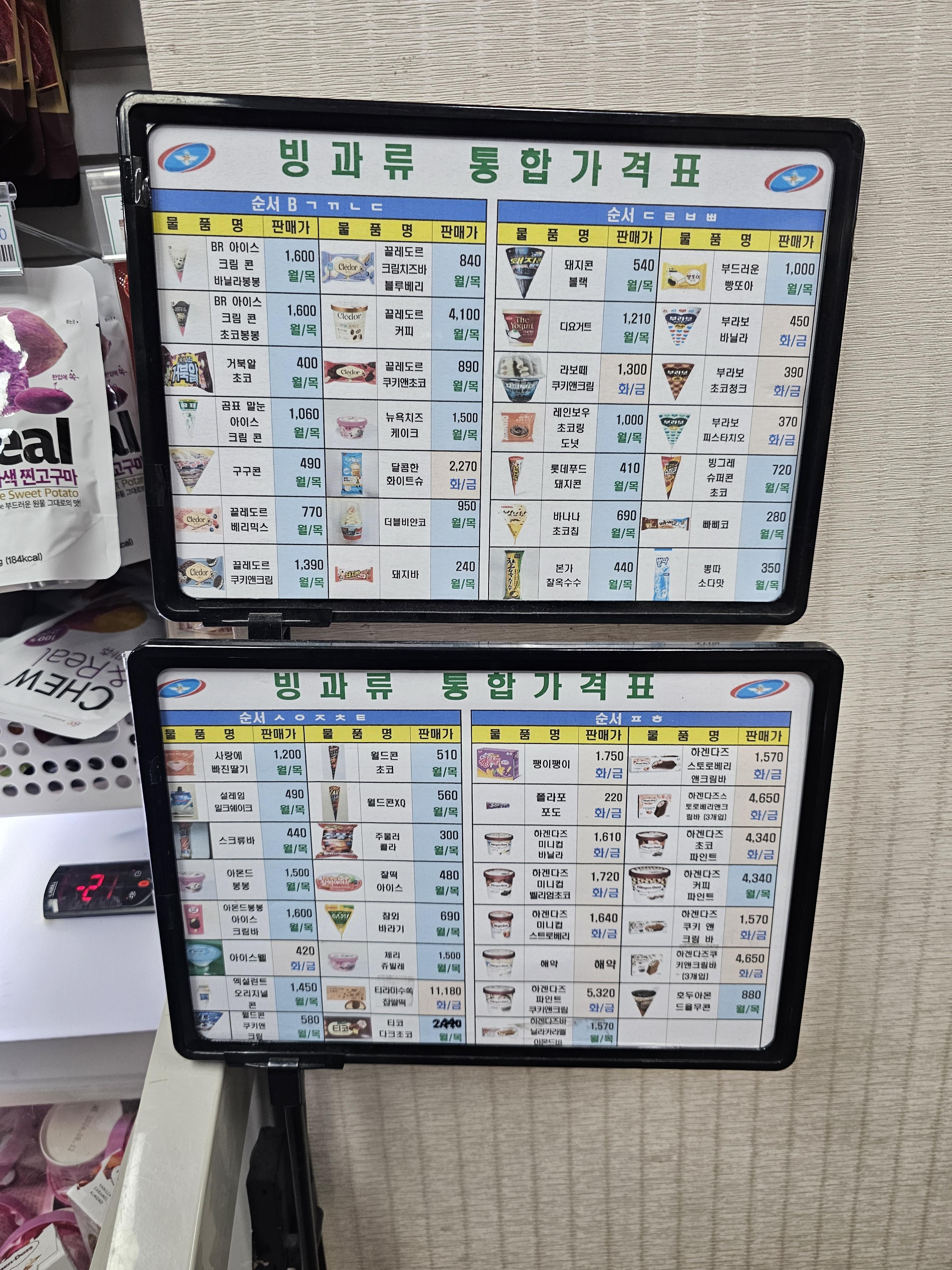 이번에 소개할 PX 군마트 코너는 아이스크림 / 빙과류 코너 입니다.